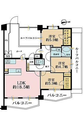 •  3LDK、専有面積78.97m2、バルコニー面積14.96m2