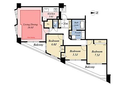 3LDK、専有面積89.24m2、バルコニー面積13.11m2