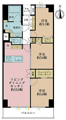 3LDK、専有面積71.28m2、バルコニー面積7.8m2