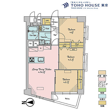 3LDK、専有面積68.11m2、バルコニー面積10.02m2