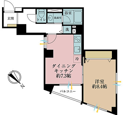 1DK、専有面積37.8m2、バルコニー面積2.88m2