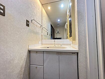 収納力も備えた大きな鏡のある洗面台!溢れがちな小物もスッキリと片付きます♪