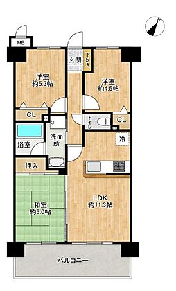 洗濯物がよく乾く南東向きバルコニー!全居室に収納!和室もある使いやすい間取りです♪