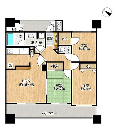 3LDKの間取。各室収納付き◎WIC付のためお洋服など沢山収納できます。
