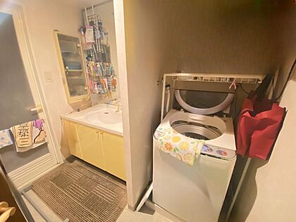 洗面台下や横にも収納があり、普段よく使うものなど分けて収納できます◎鏡が大きい為広く感じますね♪