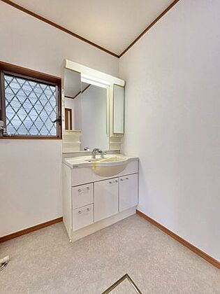 広々とした三面鏡・シャンプードレッサー付きの洗面化粧台で朝の身だしなみもバッチリですね。