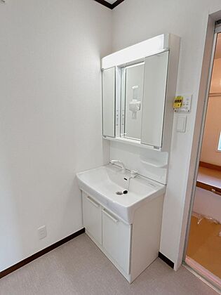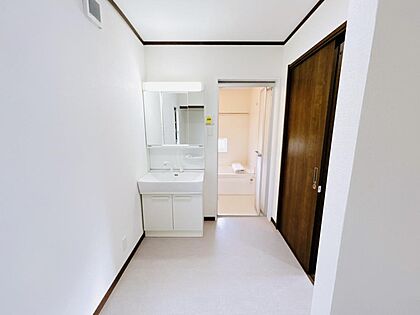 洗面化粧台は新品に交換しました。実容量17Lの大型の洗面ボウルは洗顔・洗髪はもちろん、つけ置き洗いにも使えます。照明はLEDライトです。