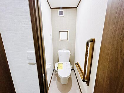 トイレは温水洗浄機能付きに新品交換しました。表面は凹凸がないため汚れが付きにくく、継ぎ目のない形状でお手入れが簡単です。節水機能付きなのでお財布にも優しいですね。