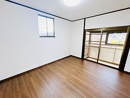 【リフォーム後】2階階段側洋室6帖です。壁天井はクロス。床をフローリングで仕上げ、照明と建具は交換を行いました。日差しが入る明るいお部屋です