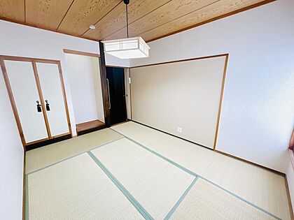 【リフォーム後】1階和室6帖です。畳表替え、照明交換、ふすま障子貼り替えを行い壁はクロスで仕上げました。