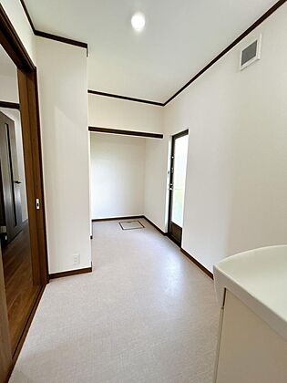 【リフォーム後】玄関には風除室が付いております。風除室があると冬の時期に外の寒い空気が建物内に入りにくくなります。
