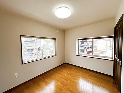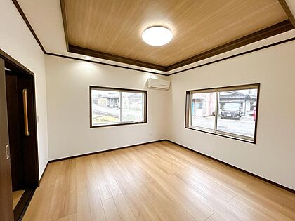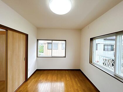 【リフォーム済】5.25帖洋室です。壁天井のクロスの張替えを行いました。