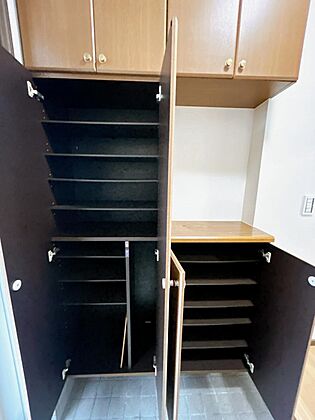 シューズボックスです。たくさん収納できますので玄関をすっきり保てます。鏡で身だしなみのチェックも出来ますね!