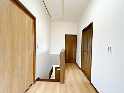 【リフォーム済】2階廊下です。フローリングの重ね張り、壁天井のクロスの張替えを行いました。