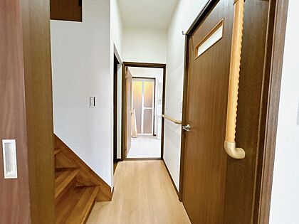 【リフォーム済】一階廊下です。フローリングの重ね張り、壁天井のクロスの張替えを行いました。