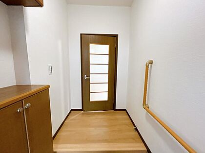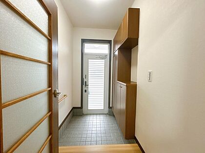 【リフォーム済】玄関内部の写真です。壁天井のクロスの張替え、照明の交換を行いました。