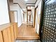 【リフォーム済】1階廊下です。フローリング上張り、クロス張替え、照明交換を行いました。