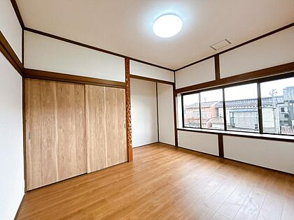 【リフォーム済】2階6帖洋室をフローリング張替え、照明交換、クロス張替えを行い洋室に変更しました。