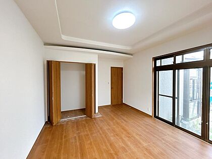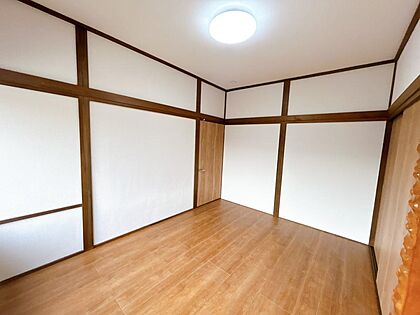 【リフォーム済】1階洋室です。フローリング上張り、クロス張替え、照明交換、クローゼット新設を行いました。