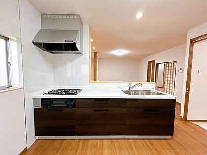 【リフォーム済】キッチンは新品に交換いたしました。引き出し収納のため、収納効率がよく、かがまずに中の確認や出し入れができます。