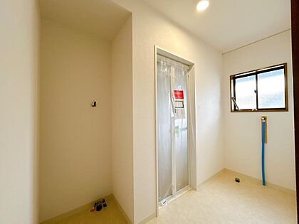【リフォーム中】洗面所です。浴室を拡張して洗面所と洗濯機を置けるように間取り変更いたします。床はクッションフロアの張替えを行います。