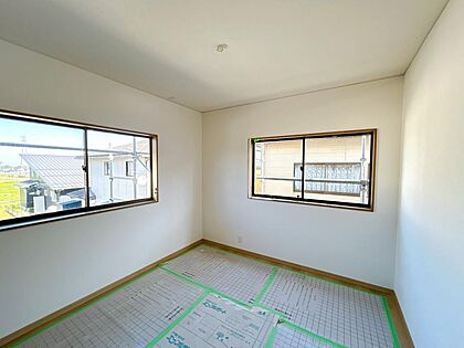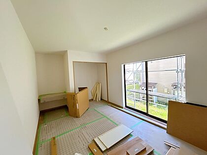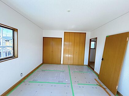 【リフォーム中】2階6帖洋室です。床はフローリングの重ね張り、クロスの張替えを行います。