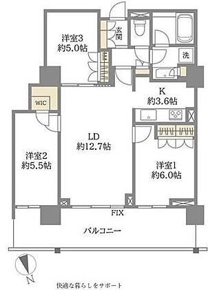 間取り 3LDK 専有面積 70.37m2(壁芯)