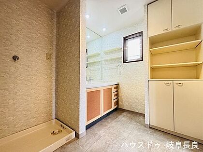 洗面台には収納もしっかりついていますので、洗剤やシャンプーなどのストックもできます。大きな鏡で朝の身支度も楽々♪