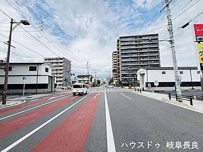 【東側前面道路北向き】長良西小学校まで徒歩約10分、長良中学校までは徒歩約15分の立地です。