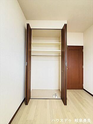 【5.4帖洋室】各居室に大きめのクローゼットがついています。引き出しタイプの家具を入れれば、ハンガーにかけれない物もスッキリ収納できますね。