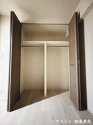 ≪5帖洋室≫衣類をハンガーにかけて収納できるクローゼットを完備。衣替えの手間が少なく、お部屋をすっきりと使えるため、快適なプライベート空間づくりをサポートします。