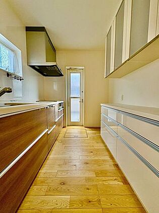 キッチンにも窓があるため、採光もあるうえに換気もバッチリです。勝手口もあるためゴミ出しなどに便利ですね。
