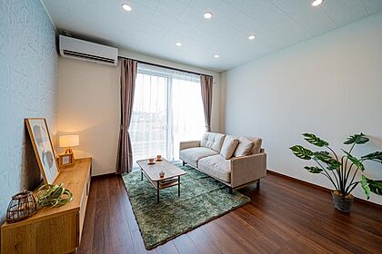 温かい自然光が降り注ぐこのリビングは、家族の絆を育む居心地の良い空間を提供します。