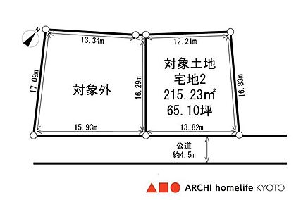 南東側(公道) 幅員約4.5m、接面約12.97m