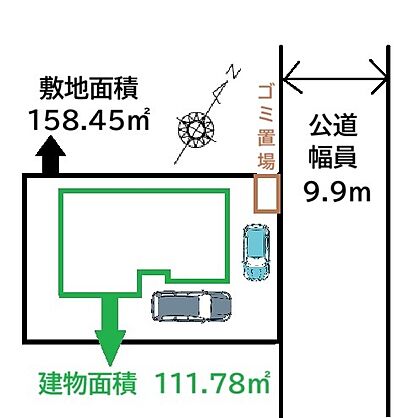 | 建物面積 | 111.78m2 | 土地面積 | 158.45m2(登記簿) |