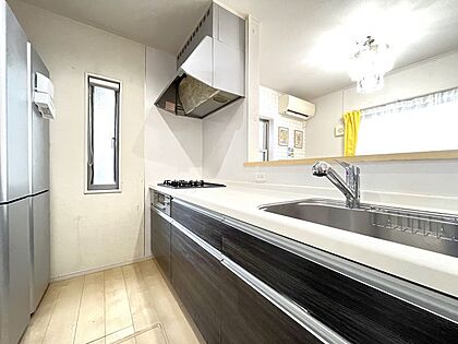 収納スペース・作業スペースが広いシステムキッチンは奥様にうれしいポイント!