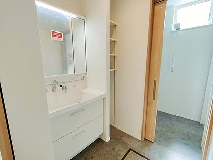 ■2号棟■レストルーム◎室内洗濯機置き場◎可動棚◎三面鏡キャビネット付ドレッサー〇シャワーノズルヘッド〇スクエアボウル