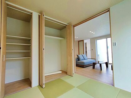 ■2号棟■1F 和室*リビングから続く洋和室*和室にもリビングにもたっぷり収納