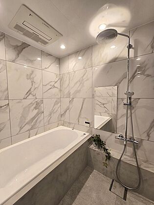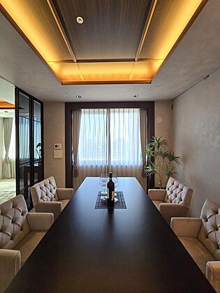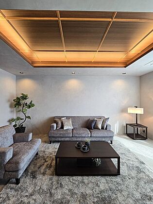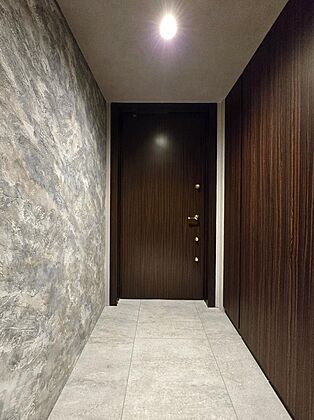 グレーとブラックを基調にまとめた空間は、 都会にありながら静けさと品格を纏う上質なホテルライク仕様。 リビング中央の天井を切り抜き間接照明を配置。 柔らかな光が陰影を描き、タイル床と塗料仕上げの壁が 奥行きあるモノトーンの世界を創り出します。 洋室にはガラス扉のウォークインクローゼットを新設し、 『魅せる収納』としてデザイン性と機能性を両立。 ガラスの観音扉でつながるダイニングでは、 選び抜かれた家具たちが特別な食卓を演出します。 玄関の壁は塗料でアートのように仕上げ、 空間そのものが美を感じさせる一室です。 落ち着きと洗練が調和する空間を、ぜひご覧ください。 |
