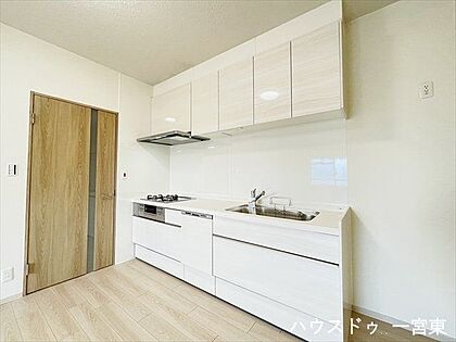 •  空間を仕切らない配置のシステムキッチン。オープンな設計により、LDK全体に一体感と広がりを生み出します。ご家族の会話を遮ることなく、コミュニケーションを大切にしながら料理を楽しめる開放的な空間です。