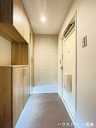 •  住まいの第一印象を決定づける玄関、大容量のシューズボックを設置。収納力だけでなく、すっきりとした見た目で清潔感を演出し、お客様を気持ちよくお迎えする格調高いエントランスです。