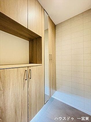•  【シューズボックス】壁面を最大限に活かした天井高の大容量シューズボックスを完備。ご家族全員の靴はもちろん、ブーツや外で使う小物までしっかりと収納でき、玄関をいつも広々と美しく保ちます。