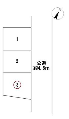 ≪東側南向き 幅約4.6m≫車がすれ違うには厳しい道幅ですが、車はスピードを抑えて走行するので、お子様にも安全な道幅となっています。
