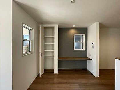 リビング収納には日用品などをスッキリ収納できますね。カウンターはお子さまの宿題場所や、PC作業スペースなどに活躍しそうです。