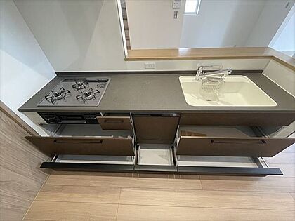 キッチン収納には調理器具や食器などをスッキリ収納できますね。