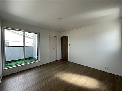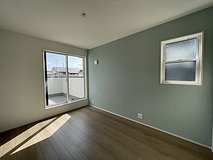 2階8帖洋室:南西側の掃き出し窓からは、バルコニーに出られます。お布団もすぐに干せますね。