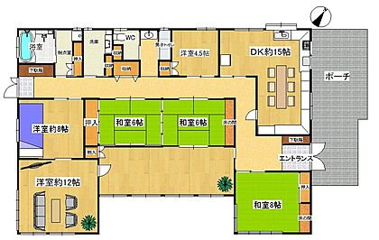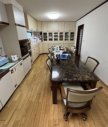 約15帖の広々ダイニングキッチン。たっぷりな収納もあります。