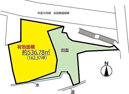 【接道】 一方 ( 公道 北 ) 登記面積は267坪。 そのうち有効活用できる面積162坪のゆとりあるひな壇二段敷地です。 市街地に位置し、小学校まで徒歩2分という好立地! スロープ付きで車の出入りも安心。 上段は開放感ある眺めで住宅やアパートを建て、下段は道路に面しているので駐車場やガーデン、 または店舗スペースとして活用するなど、多彩なプランに対応できます。 また法面部分があることで隣地との距離も確保でき、プライバシー性や眺望性が高い環境が実現します。 子育て世帯の住まいとしても、収益物件用地としても柔軟にご検討いただける 利便性と広さを兼ね備えた土地です。 敷地面積 885.89m2(267.98坪)(法面)斜面地含む 有効面積 約536.78m2(162.37坪)(法面)斜面地除く 現在 登記上は畑・雑種地となりますが 宅地に地目変更してのお渡しとなります。 |