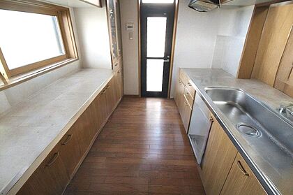 大型食器棚付きのキッチンですお勝手も付いてゴミ捨てにも便利です(家具は消す加工をしております)