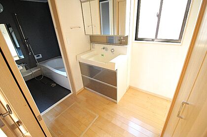 洗面台は嬉しいシャワー付きです洗面所収納有りで便利です